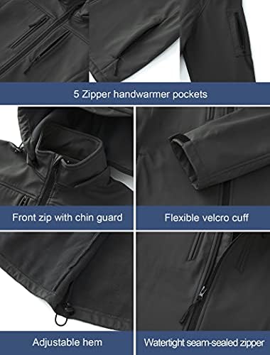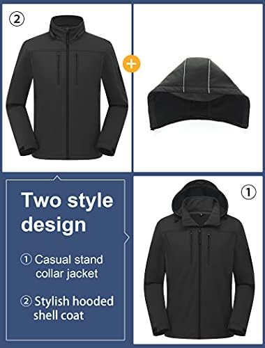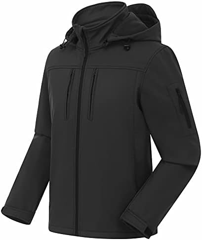 CREATMO US Males’s Softshell Army Jacket With Detachable Hood, Fleece Lined and Water Repellent Outside Reflective Coat