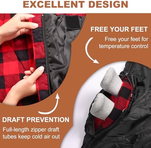 【Premium Spacious Twin Sleeping Bag】Bored with combating for area in your sleep? Our flannel Queen-Sized sleeping bag is a whopping 87×63 inches—4 inches wider than most! Supplies luxurious sleeping area for 2 adults. This backpacking double sleeping bag is ideal for {couples} who like to sprawl out that permits unrestricted motion. Snuggle up with out the squeeze!