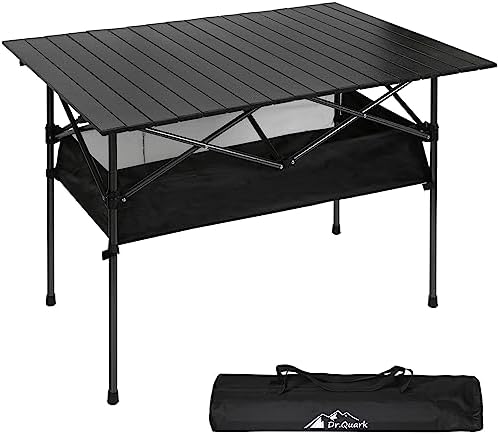【LARGE MESH STORAGE】: DrQuark’s Folding Tenting Desk is a product that mixes magnificence, portability and practicality. UNFOLDING SIZE: 41.4x 28.4x 28.4 in affords sufficient seating room for 4-6 peoples. Mesh pockets present giant area to retailer snacks, magazines or provides, and many others. It may be rapidly faraway from all 4 legs when you do not want it.