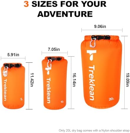 Premium Nylon: Crafted from high-quality nylon materials, Treklean Waterproof dry luggage guarantee sturdiness and longevity, offering dependable safety in your belongings in varied outside actions.