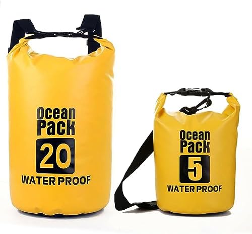 Dry Luggage for Kayaking Waterproof Set of two (20L+5L) tenting gear Roll High Sack Retains Gear Dry for Kayaking, Rafting, Boating, Swimming, Tenting, Climbing, Seashore, Fishing