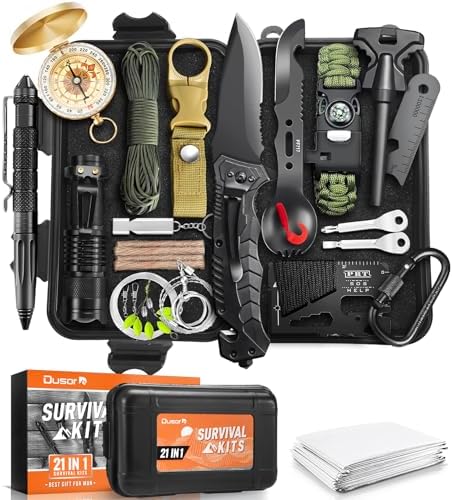 Dusor 21-1 survival kits integrates numerous instruments into one software field, making it simple to hold and use. It’s a vital software for many who like out of doors adventures equivalent to tenting, climbing, and wild survival. Tenting necessities for males, dad, brother, tenting equipment for campers.