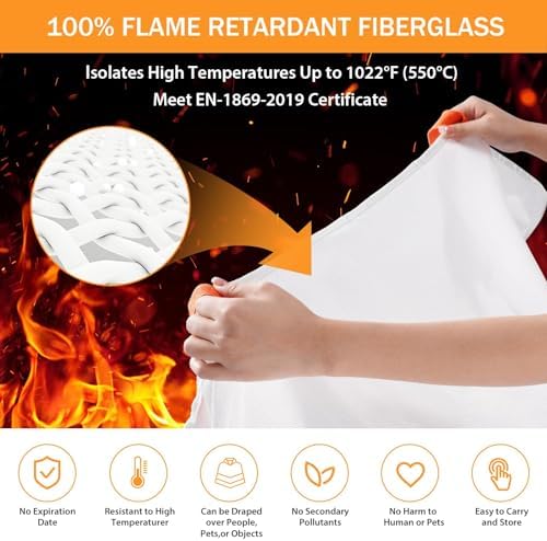 🔥【PREMIUM FIREPROOF MATERIAL】Fireplace blanket is designed with 100% high quality flame retardant fiberglass, which may isolate excessive temperatures as much as 1022°F (550°C). They conform to CE security requirements (EN 1896:1997). The tabs with particular flame retardant remedy, in contrast with different fireplace blankets with nylon tabs available in the market will burn beneath the warmth supply, our fireplace retardant tabs usually are not affected by excessive temperature, safer to make use of.