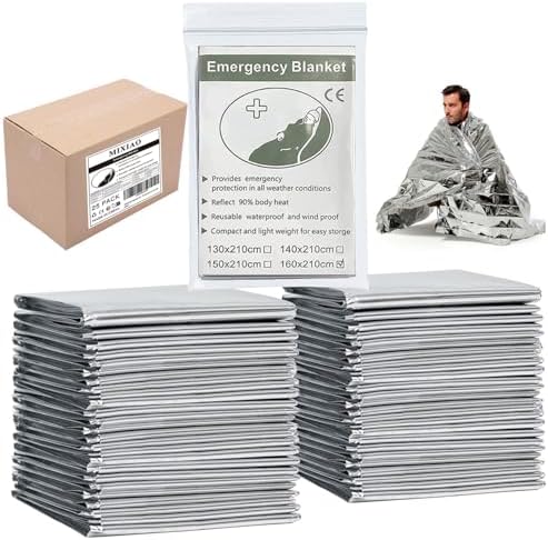Emergency Foil Thermal Blanket Survival Blankets emergency foil blanket emergency shelter Mountaineering Survival Marathons or First Help. Measurement of every blanket when opened – 63 inches x 82 inches, Weight: 2.5oz ,Thickness: 12 microns, Matches Simply into Your Emergency Equipment. Designed to replicate / retain as much as 90% of your physique warmth, Helps forestall hypothermia and shock, offers handy simple safety in all chilly or heat climate states, Survival Blankets Good for Outdoor, Mountaineering, Survival, Marathons.