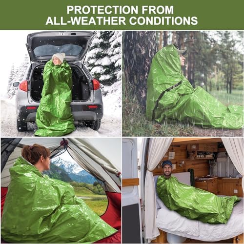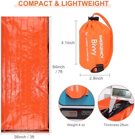 MULTIPURPOSE EMERGEMCY BAG: The emergency sleeping bag serves as your emergency bivy sack, emergency blanket, and survival shelter all-in-one,premium alternative for emergency conditions in want of heat safety from all-weather situations. Appropriate for tenting, mountaineering, path operating,journey,and different outside actions.