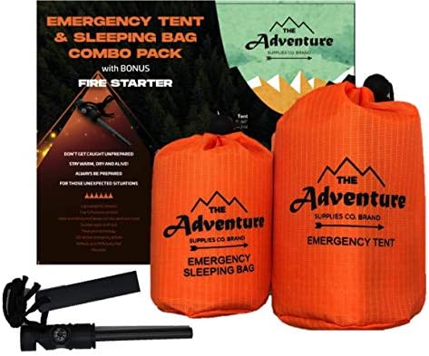 BE PREPARED FOR THE UNEXPECTED: This emergency combo equipment gives an emergency tent for shelter from the weather and an emergency sleeping bag (bivy) to assist hold you heat by trapping in your physique warmth. Designed for emergencies and survival, these embody a survival whistle and a BONUS FIRE STARTER. The colourful orange shade can help in search and rescue. Excellent for mountain climbing, tenting, horseback driving, survival gear, automotive survival equipment, and emergency shelter in place.