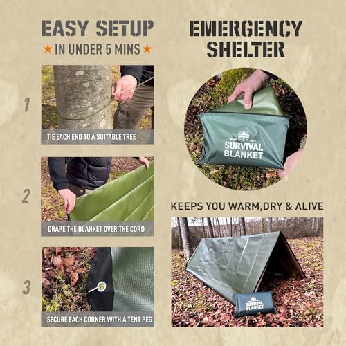 VERSATILE USES: Maintain one in your automotive, truck, backpack, or emergency go-bag to be absolutely ready for any scenario. It is excellent to be used as a water-resistant groundsheet, emergency tent, lean-to bivvy, sleeping bag, hammock flysheet, or campervan awning.