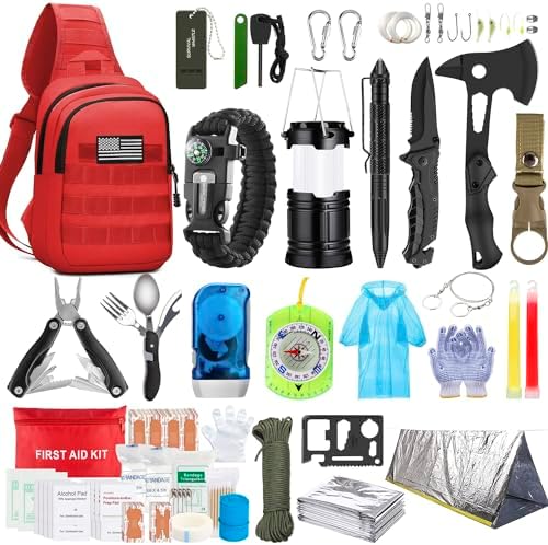 [Premium Survival Instruments]: Consists of probably the most helpful survival instruments: tactical folding knife, fireplace starter, compass, folding pliers, flashlight, multi-function paracord bracelet and extra sensible survival gears. Emergency tent supplies you a brief shelter; thermal blanket can retain 90% physique warmth once you in chilly. 12 inches survival axe consists of the capabilities of chop, lower, break up, chip, trim, open, and have a pointy blade and a protecting Nylon sheath.
