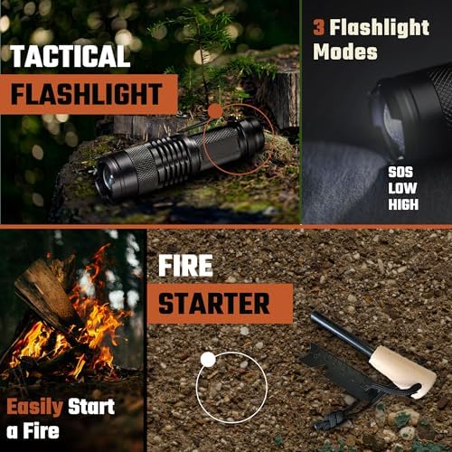 HANDLE ANY WILDERNESS CHALLENGE: From establishing shelter to treating accidents, this complete survival tactical gear gives options for each outside state of affairs. Consists of first assist provides for fast emergency response
