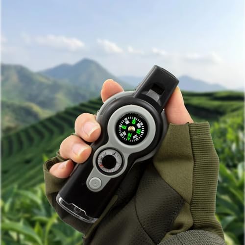 Multi-Objective Survival Companion: With our 7-in-1 outside survival whistle, you may have a dependable instrument with a , magnifying glass, LED gentle, mirror, thermometers, and difficult lanyard for any pressing state of affairs.