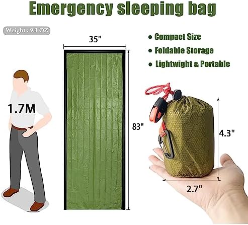 【Survival Whistle & Carabiner】 Carabiner means that you can connect your emergency sleeping bag to your rucksack for straightforward carrying within the outdoor. The survival whistle emits a loud 120DB sound to play a vital function in any emergency state of affairs.
