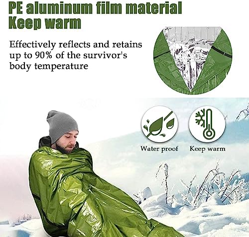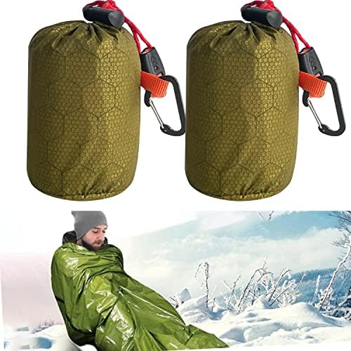 Emergency Survival Sleeping Bag 2 Pack Ultralight Waterproof Thermal Bivy Sack Moveable Survival Shelter Blanket Baggage with Whistle and Carabiner for Tenting Climbing Journey