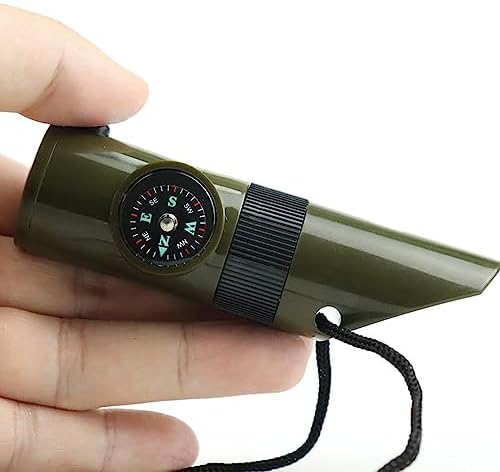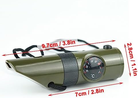 [Emergency Whistle] – Be ready for any scenario with this 7-in-1 whistle that includes a built-in led gentle, compass, thermometer, magnifying glass, and a reflective sign mirror.