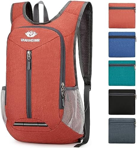 Esup 15L Light-weight Mountaineering Backpack Foldable Small Journey Backpack Packable Tenting Backpack for Girls Males (Darkish Orange)