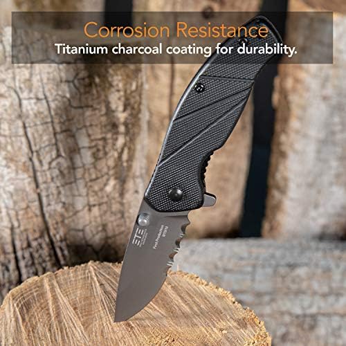 Corrosion resistant coating on blade, liners, clips, studs and fasteners for sturdiness and lengthy product life Slip resistant machining for safe grip in grueling work conditioned, Work, Tactical Liner Spring Assisted / Stainless Steel2. 5 oz. 420 SS, 48 HRC, Thick, Titanium Black FinishG10Combination with 40% Serrations Twin . 2″ 416 SS, Charcoal Titanium End Charcoal Titanium End Flat Drop Level Stainless 8Cr13MoV, 56 HRC