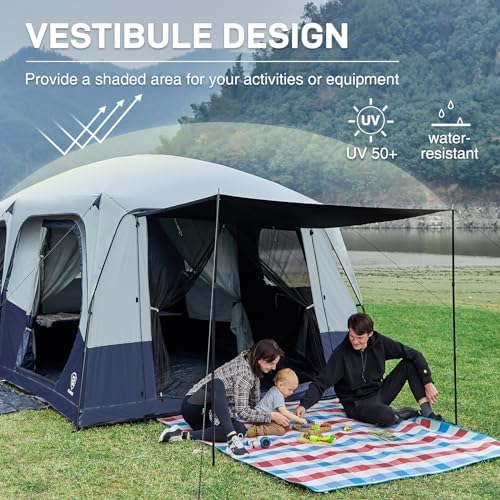 SPACIOUS 10-PERSON TENT: This tent measures 14ft x 10ft and matches 3 queen air mattresses; the middle peak of 84 inches ensures that most individuals have sufficient high house contained in the tent with out stooping; It excellent for giant households, a great household tent for automobile tenting or household outside journeys.
