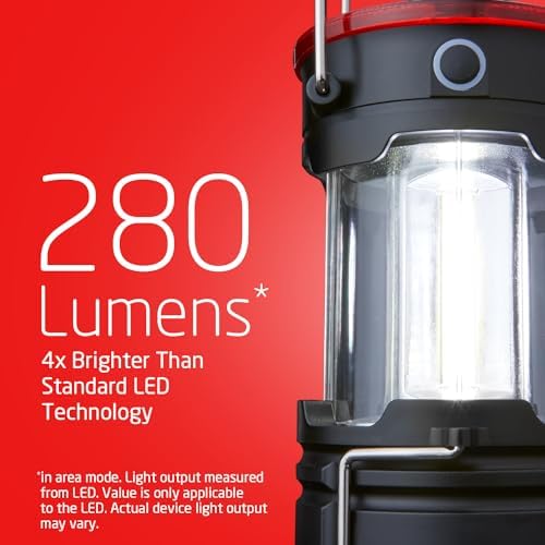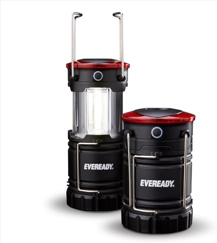 Brighten any space with the Eveready Collapsible Tenting LED Lantern. With handy high handles, it may be carried as a lantern or collapsed it right into a single beam flashlight with aspect holding deal with for as much as 91 meters of distance. It delivers 360° of space gentle with 280 lumens as a lantern and 60 lumens of sunshine as a directional highlight. Illuminate your path on a mountain climbing or tenting journey, gentle up small areas throughout DIY tasks, or brighten the within of your house throughout an influence outage. With crimson night time imaginative and prescient mode, it’s the proper gentle for nighttime out of doors actions… plus it has a sturdy development, heavy-duty base magnet for versatile placement, and non-obligatory single base hook for hanging. It options 4 handy modes, together with a crimson flashing gentle for emergencies. Add the Eveready Collapsible Tenting LED Lantern to your house or emergency package for the proper method to hold issues in view—even within the darkest locations.