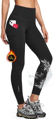 Ewedoos Fleece Lined Leggings with Pockets Waterproof Leggings Thermal Winter Heat Leggings for Girls Mountaineering Ski Tenting