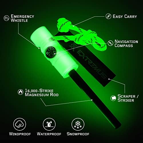 Extremus 6-in-1 Magnesium Fireplace Starter with Striker, Firestarter with Carabiner Survival Software, Excessive Temp Magnesium Rod