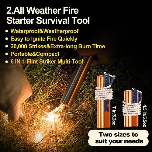 【Greater than only a Fires starter】In addition to the firestarter, you additionally get a compass for out of doors emergency use; aluminium storage for small gadgets; 6-in-1 multi-functional lighter ruler. Nice for mountaineering, tenting, backpacking and wilderness survival.