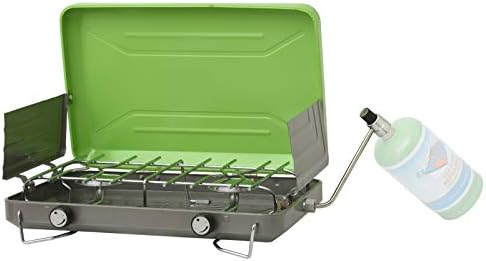 Flame King VT-101 2-Burner Portable Camping Stove Grill, Great for Outdoor Cooking, BackpackingFlame King VT-101 2-Burner Portable Camping Stove Grill, Great for Outdoor Cooking, Backpacking 15″X9″ COOKING SURFACE