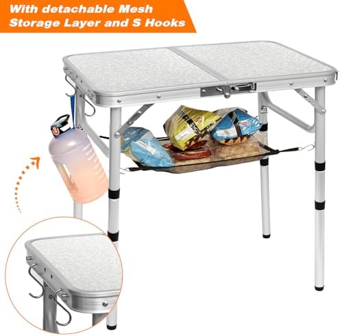 Because of the mesh storage layer and S-hooks beneath this helpful metallic folding desk, you’ll be able to hold your cooking provides, snacks, cutlery, audio system, baggage, gear, and extra organized