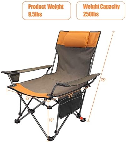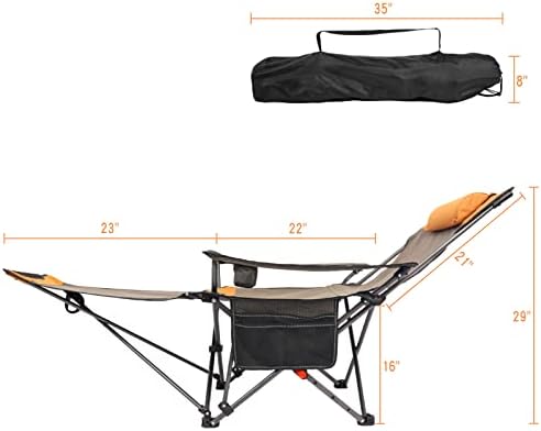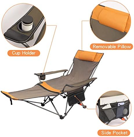 Folding Tenting Chair with Detachable Footrest and Adjustable Backrest for Adults, Moveable and Light-weight Reclining Lounge Chairs with Pillow, Cup Holder and Aspect Pocket for Outside