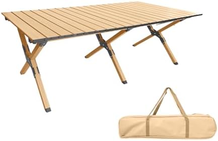 Folding Tenting Desk, Roll-Up Folding Desk with Carry Bag, Moveable Aluminum Picnic Desk, Low Peak Seashore Desk for Out of doors Use, Journey, BBQ & Mountaineering, Simple Meeting (Pure)