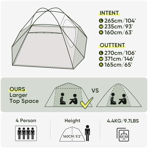 【PROFESSIONAL DESIGN】 There are two D-shaped doorways within the tent. The outer account has two vestibules. The higher a part of the tent has a big mesh window and two ceiling vents to maintain the air flowing. The high-density micro-mesh cloth is efficient in resistanting to ripping whereas making certain air circulation