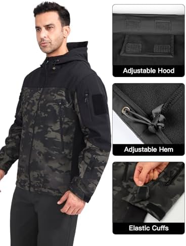 FREE SOLDIER Males’s Out of doors Waterproof Comfortable Shell Hooded Army Tactical Jacket