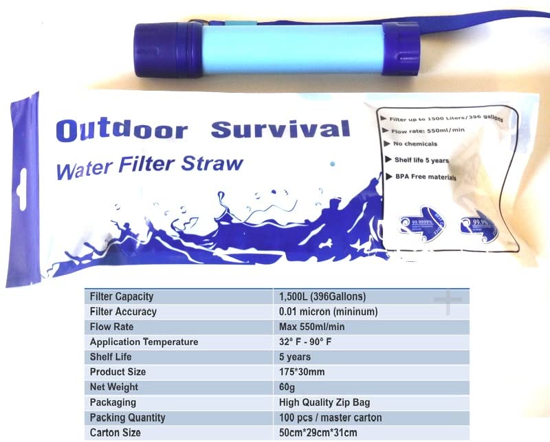 The Water Filter Straw may be linked with water baggage or water bottles to filter water for consuming. Each ends of it may be disassembled and linked with the water baggage and the water bottles to give you clear consuming water anytime in anyplace situation.