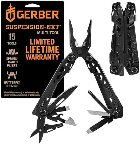 The Gerber Gear Suspension-NXT 15-in-1 Multi-Software Pocket Knife is the evolution of a traditional, designed to raise your tenting gear and on a regular basis carry (EDC) expertise. This compact powerhouse boasts an elevated depend of 15 instruments in a lighter, thinner design, becoming comfortably clipped in a pocket or on a belt. New additions embrace a wire stripper, medium flathead screwdriver, axe, file, and ruler, complementing its versatile pliers and different benchmark options. All outboard instruments are locking, guaranteeing security and effectivity whether or not you are utilizing it as a part of your tenting gear, emergency survival gear, mountaineering gear, or for on a regular basis duties. This state-of-the-art multi-tool is ideal for out of doors fans, DIY tasks, {and professional} use alike. Backed by the Gerber Assure, our restricted lifetime guarantee, this pocket knife multi-tool is constructed to final and able to deal with any problem you encounter in your out of doors adventures or day by day life.