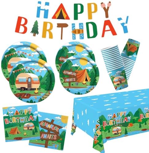 Vibrant Outside Class: Our plates and napkins are adorned with a vigorous camping-themed design, infusing “tenting celebration decorations” allure into birthday events, tenting picnics, or scouting occasions. This colourful assortment captures the spirit of journey and is certain to thrill fanatics of all ages.