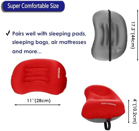Introducing the Gold Armour Inflatable Tenting Journey Pillow, Ergonomic Neck and Lumbar Help – Ultralight Compressible Sleeping Pillows for Camp, Mountain climbing, Backpacking