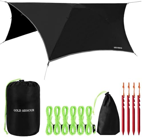 Gold Armour Rainfly Tarp For Hammock and For Tent, Tenting Necessities Rain Fly Cowl, Waterproof Light-weight Tenting Equipment, Survival Tenting Gear Tenting Tent Equipment