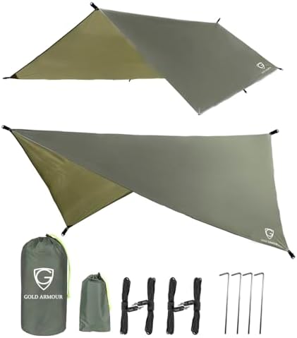 Gold Armour Rainfly Tarp For Hammock and For Tent, Tenting Necessities Rain Fly Cowl 12x10ft, Waterproof Light-weight Tenting Equipment, Survival Tenting Gear Tenting Tent Equipment