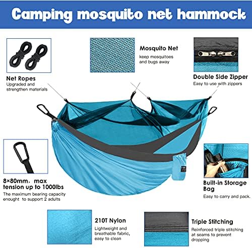 ✔ DURABLE DOUBLE HAMMOCK WITH BUG NET – Our Tenting hammock comfortably supporting as much as 500 lbs: This double tenting hammock tenting necessities suits as much as 2 folks, you possibly can lay down together with your pal or beloved one. Due to the brand new 210T nylon parachute material, this double tenting necessities hammock present enjoyable help as much as 500 lbs