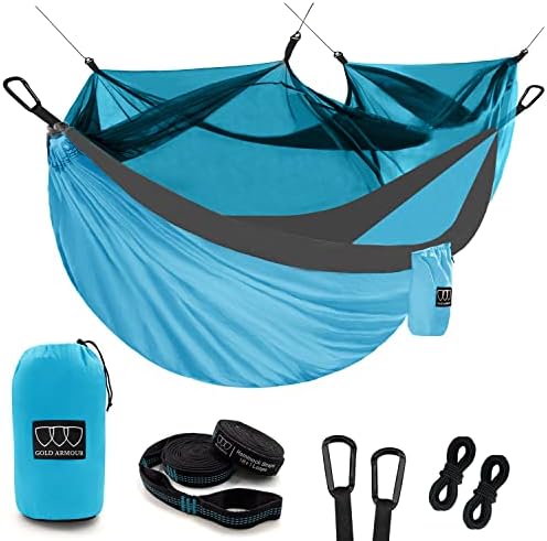 Introducing Gold Armour Tenting Hammock – Tenting Necessities, Double Hammock with Bug Internet, Tenting Gear Transportable Hammock for Exterior, Mountaineering, and Journey