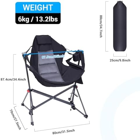 HAMMOCK FUNCTION: This hammock tenting chair affords a singular and comfy method to unwind and luxuriate in a mild rocking movement. The suspended seat that hangs from a sturdy body. The chair again is reclining and adjustable by free or tighten the 2 belts.