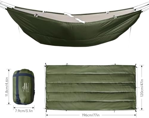 【Compact & Light-weight】Weighing in at simply 2.55 lbs and compressing to a handy dimension of 11.8x 7.9x 7.9(inch) within the included compression stuff sack, this underquilt is ideal for tenting, backpacking, climbing, mountaineering, and different outside adventures.