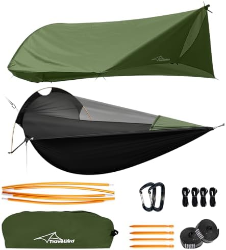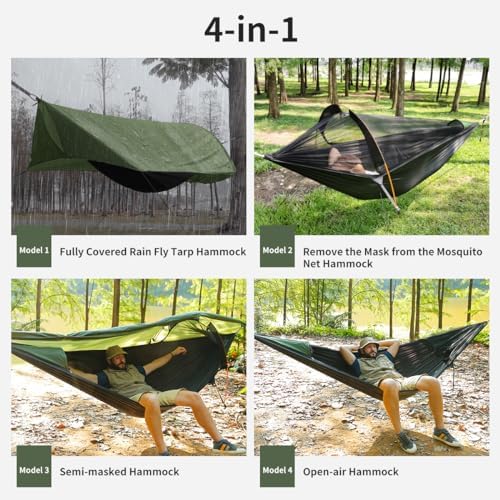 ✅【4 In 1 Multifunctional】Expertise consolation and adaptability with our tenting hammock that mixes 4 features: 1)a hammock with rain fly and internet, 2) a hammock with internet, 3) a tree hammock, and 4) a semi-masked hammock tent. Journey Fowl hammock meets your totally different calls for in tenting, backpacking, climbing, outside journey, or simply hanging and stress-free in yard.