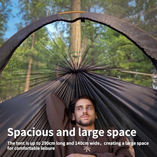 ✅【Hammock with Mosquito Internet】Our hammock tent encompasses a built-in bug internet that successfully stops mosquito bites, whereas additionally offering a compact, dense design that forestalls pesky bugs from getting in. With its spacious design (114”L x 55”W) and weight capability of 440 lbs, this hammock tent is ideal for solo adventures.