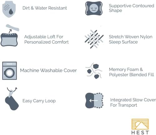 HEST Tenting Pillow – Temperature Resilient Reminiscence Foam – Important for Tenting, Backpacking, and Out of doors Adventures – Compact Packable Journey Pillow
