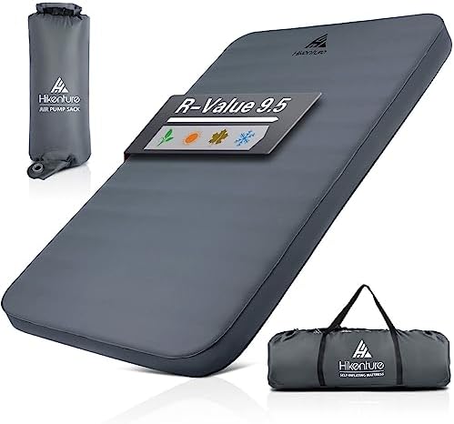 Hikenture Further Thick Double Self Inflating Sleeping Pad, 9.5 R Tenting Mattress 2 Individual, Inflatable Foam Tenting Pad with Pump Sack, Moveable 4 in Thickness Consolation Plus Tenting Mat for 4-Season