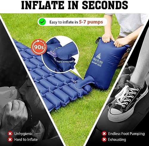 NO MORE WAKING UP ON TOUGH GROUND: Manufactured by tenting grade ripstop material, our double tenting pad is apt to many alternative terrains and designed to final for a lifetime! In contrast with different low cost PVC materials, we’ve got laminated poly pongee floor and waterproof TPU coating on our inflatable sleeping pad which can be carried out higher in comfortable, tear-resistance and water-resistance.