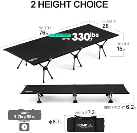 2 peak modes for possibility:Excessive mattress mode and low mattress mode on your possibility.This grownup could be transformed from 6.2″ to fifteen” in peak. It is possible for you to to decide on a preferable peak to sleep,retains you off the chilly floor and away from bugs,in case you tent camp , this must be in your provide stash.