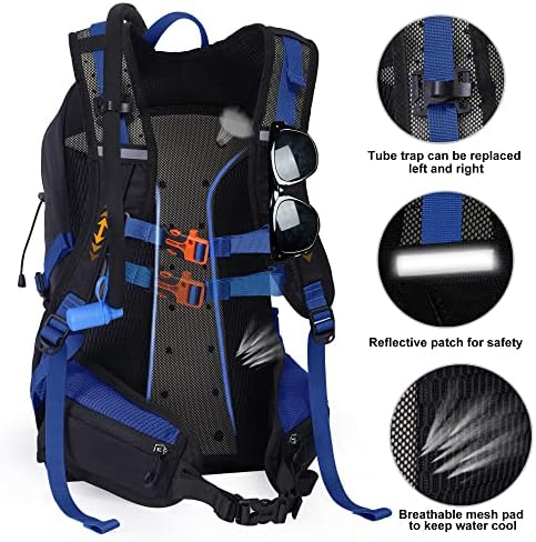 【Reflective at evening】: climbing backpack with water bladder shoulder straps have 2 reflective markers, a reflective view model emblem in entrance, and a reflective strip on the backside. The underside zipper pocket is a rain cowl compartment, thoughtfully designed to deal with wet climate and preserve hydration packs dry always.