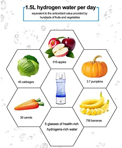 Rapidly produce hydrogen water: The water bottle shortly produces hydrogen gasoline. The hydrogen content material of 600-1300PPB will be produced in solely 3 minutes. 1.5 liters of hydrogen-rich water is equal to the antioxidant worth of a whole bunch of vegatables and fruits