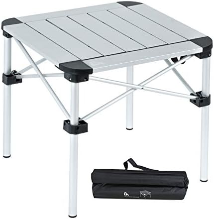 iClimb Light-weight Steady Alu. Folding Sq. Desk Roll Up High with Carry Bag for Tenting Picnic Backyards BBQ Camp Kitchen (Silver, S)