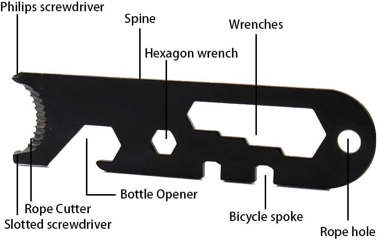 Included a Multi-tool Scraper that can be utilized as: Philips Screw driver, Backbone, Hexagon Wrenches, Rope Gap, Bicycle Spoke, Bottle Opener, Rope Cutter, Slotted Screwdriver